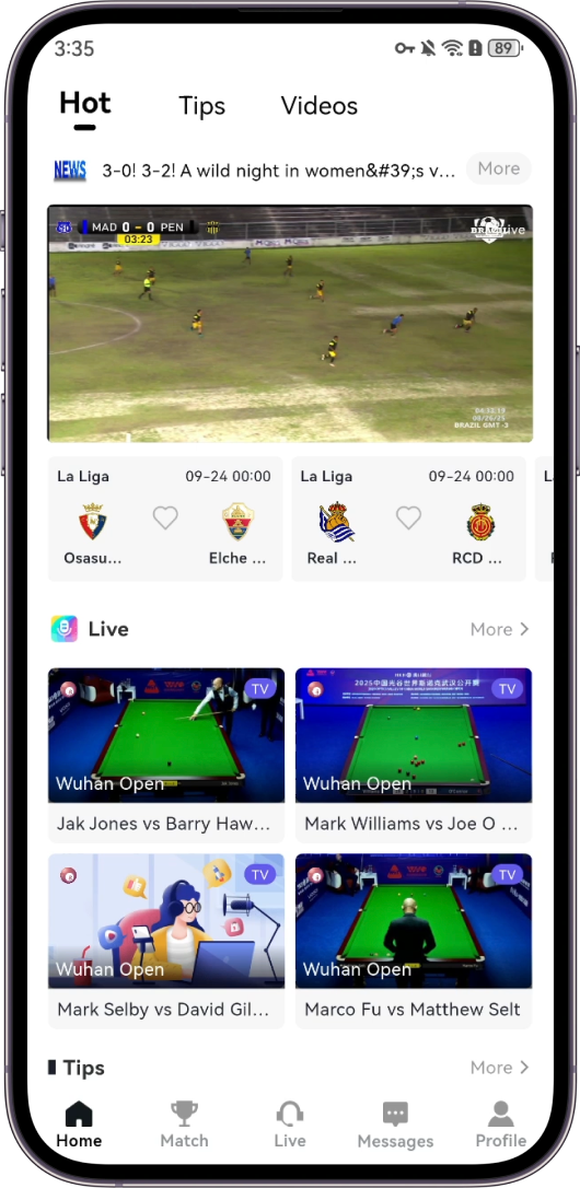 Covering 100+ sports and e-sports events in HD live streaming, free to watch