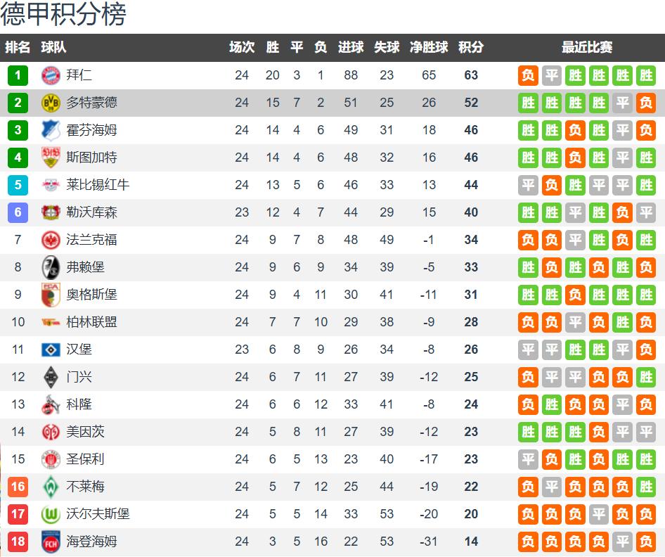 The Bundesliga has completed 24 rounds, with 10 matches remaining. After Bayern Munich came from behind to defeat Borussia Dortmund in the latest Der Klassiker, Bayern now leads the Bundesliga table by 11 points, effectively ending the title race early. Dortmund suffered two losses within a week—exiting the Champions League and falling out of title contention—a devastating blow.