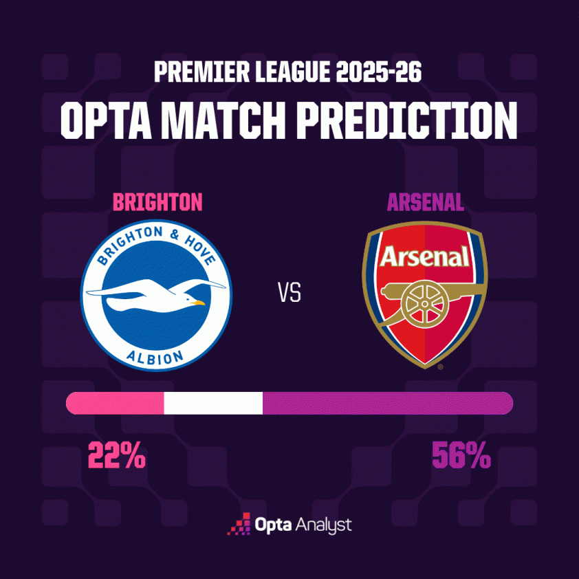 Opta predicts Arsenal have a 56% chance of winning against Brighton (Image: Opta).